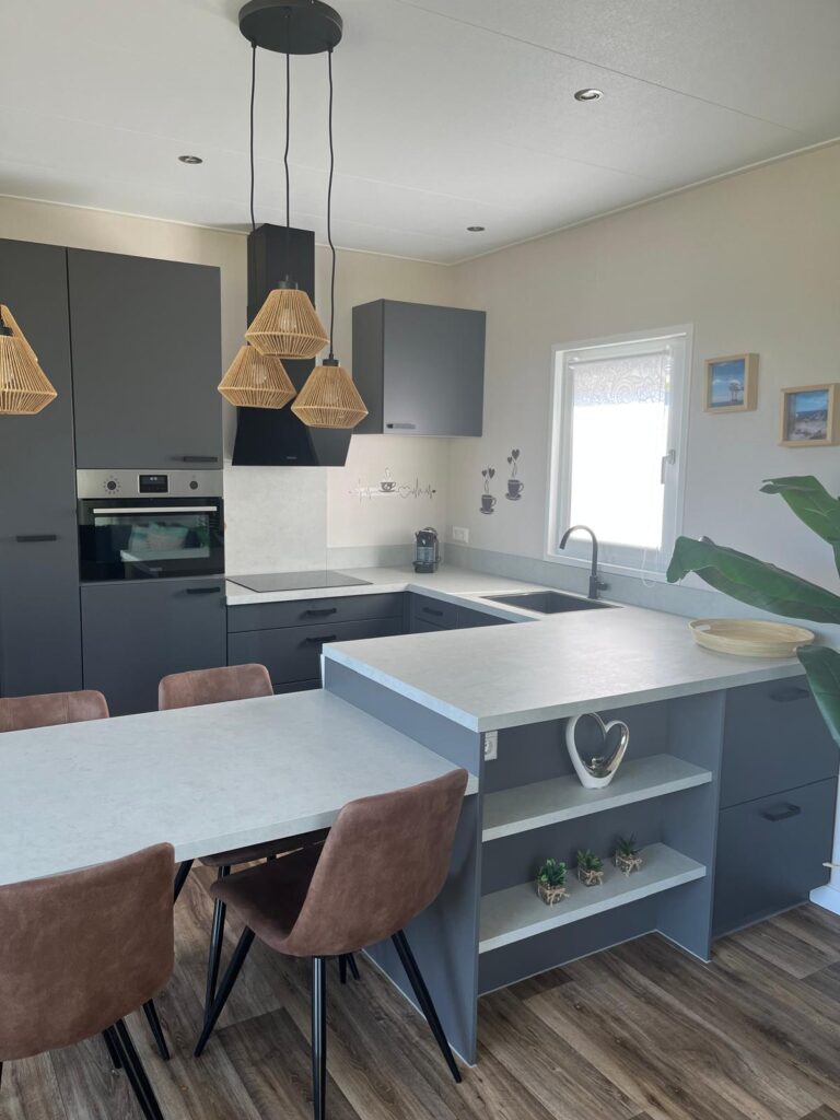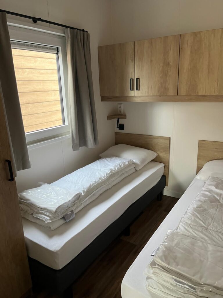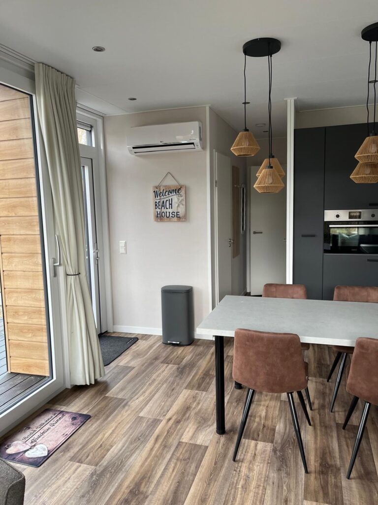 Chalet 708 ist ganzjährig buchbar – dank moderner Isolierung, Heizung und Klimaanlage ist es zu jeder Jahreszeit ein gemütlicher Ort für entspannte Tage am Meer.
